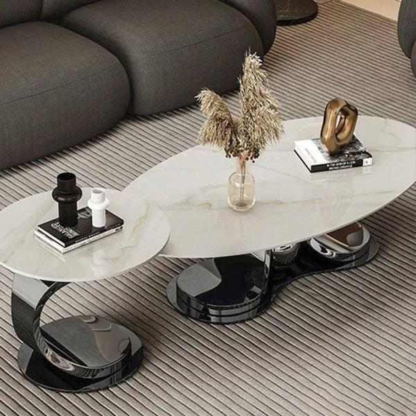 Add a touch of elegance to your living space with the Steel Embrace Centre Table. This Set piece is crafted from premium Steel & Composite Marble, offering both durability and style. Perfect for modern interiors.